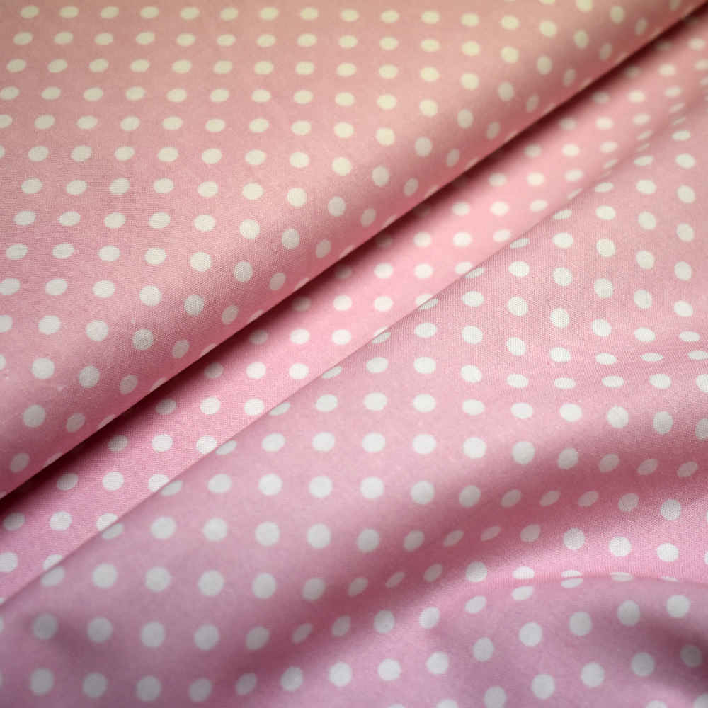 Tela de topos blancos con fondo rosa claro. Stof Fabrics