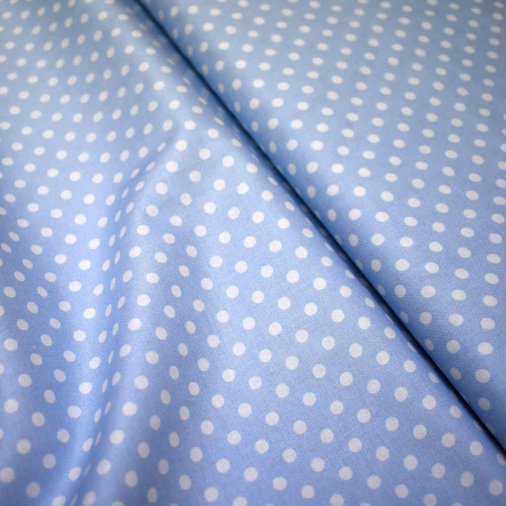 Tela de topos blancos con fondo azul. Stof Fabrics. Color 681
